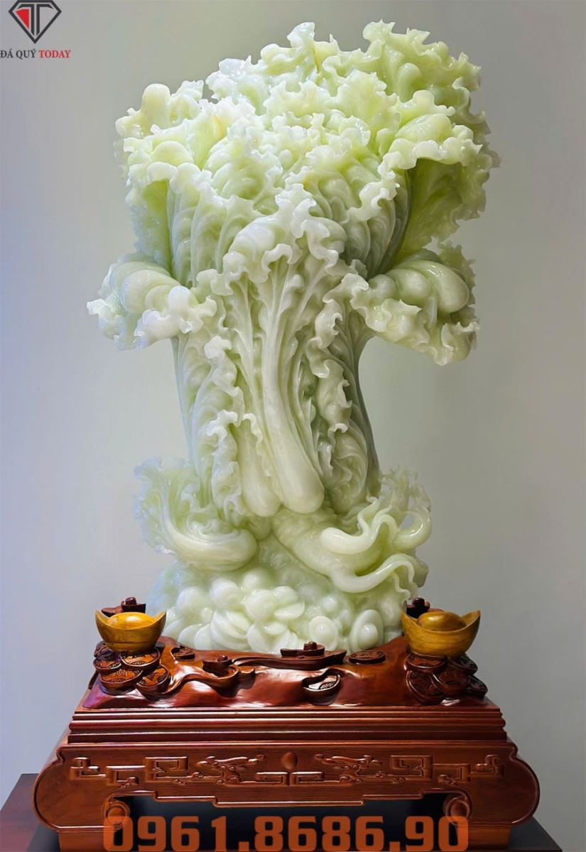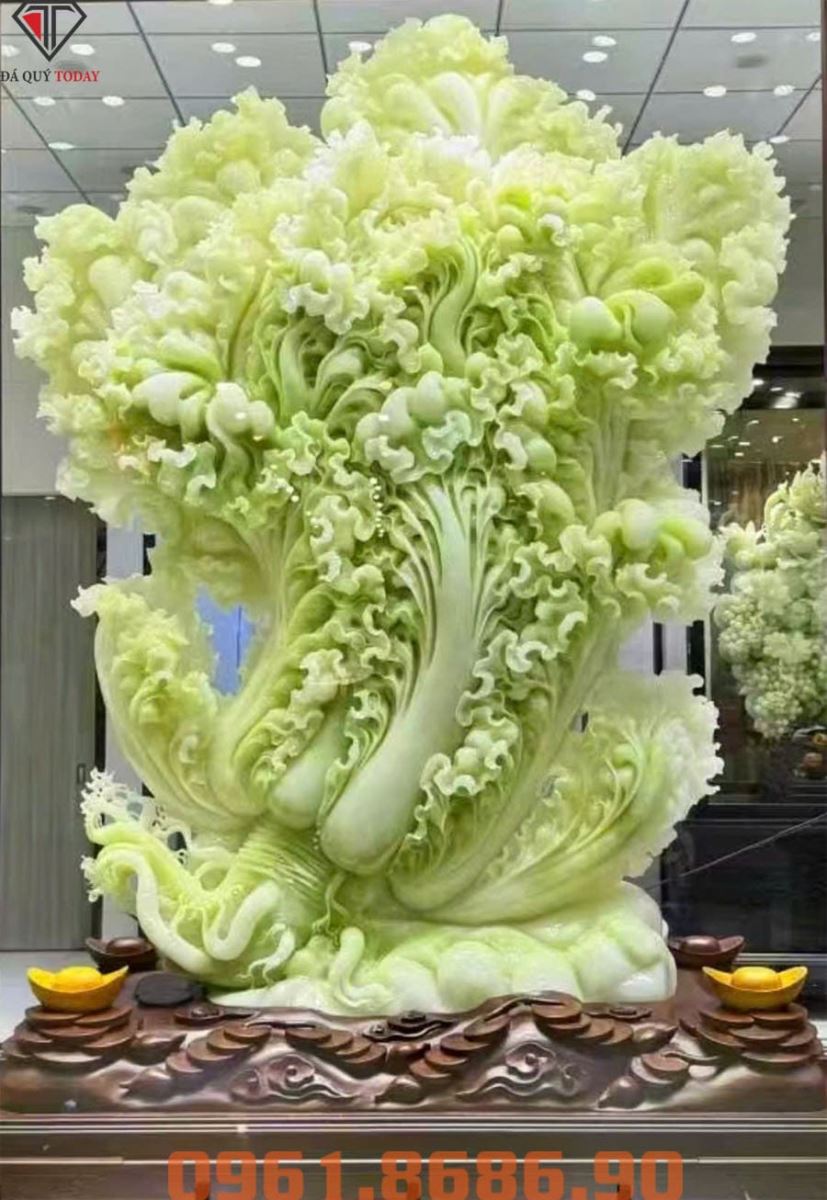Những chiếc bắp cải phong thuỷ qua bàn tay của các nghệ nhân, chạm khắc bằng cả cái tâm lẫn cái tầm, đã trở thành kiệt tác phong thủy đáng sở hữu, được làm bằng những khối đá thạch anh, ngọc … quý hiếm, những chiếc bắp cải phong thủy mang trong mình vẻ đẹp thuần khiết, trường cửu của đất trời, kết tinh trong mình nguồn vượng khí dồi dào, càng làm tăng thêm ý nghĩa cho vật phẩm. Từng đường nét trên bắp cải phong thủy bằng ngọc đều được chạm khắc tỉ mỉ, cân đối và chân thực đến kì lạ. trang hoàng trong không gian sống khiến cho phòng khách, bàn làm việc, công ty càng sáng bừng, tăng thêm giá trị phong thủy…
