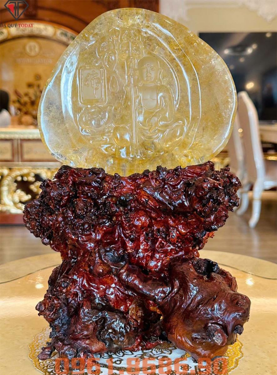 Tượng hoàng thần tài để bàn làm việc bằng đá thạch anh bao thể đẹp hiếm có tại cửa hàng Đá quý Today