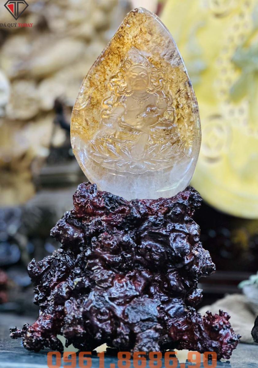 Tượng phật chuẩn đề bồ tát để bàn làm việc bằng đá thạch anh ưu linh tại cửa hàng Đá quý Today